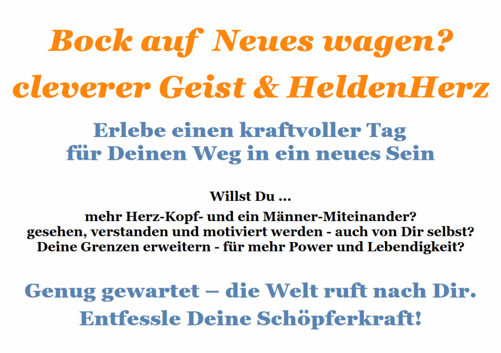 Ich freue mich auf ein inspirierenden Tag in (D)einem Männer-Rudel auf Zeit